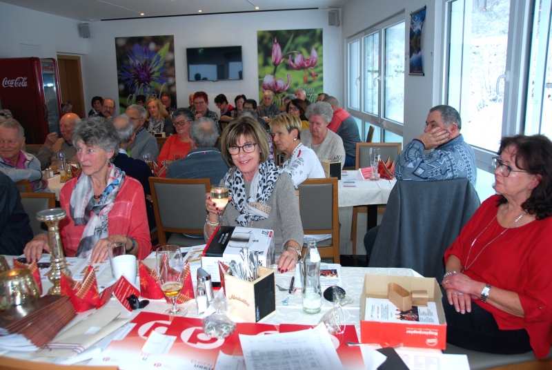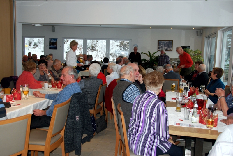 Der festlich dekorierte Saal im Hotel „Talhof“ der Familie Weirather in Wängle war mit rund 100 Mitgliedern der PVÖ-Ortsgruppe Weißenbach am Lech voll besetzt. Neun Musikanten und Sänger/Sängerinnen sorgten von Beginn an für eine vorweihnachtliche Stimmung. Bemerkenswert finden wir, dass unsere Mitglieder aus Forchach nahezu vollständig anwesend waren!