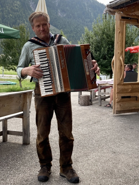 Auf der anderen Talseite fuhren wir wieder zurück nach Heiterwang, wo wir noch beim „Sunnawirt“ einkehrten. Für die beinahe schon obligate musikalische Unterhaltung sorgte der Sunnawirt persönlich.