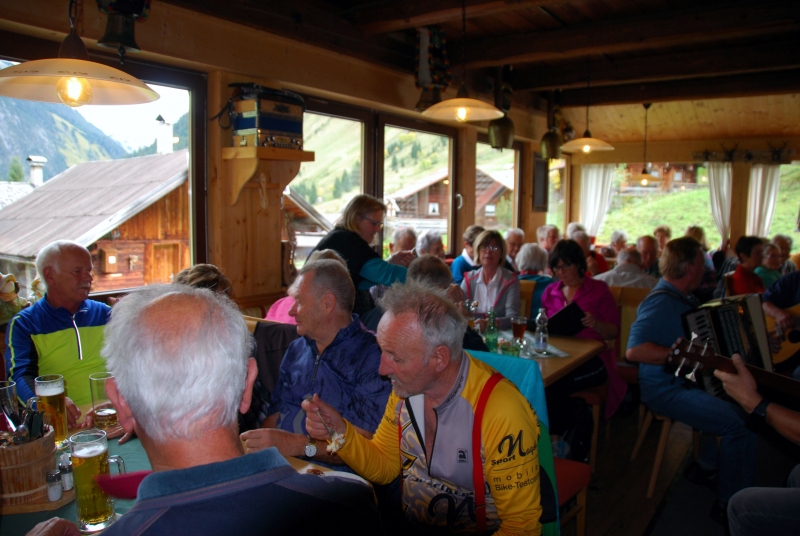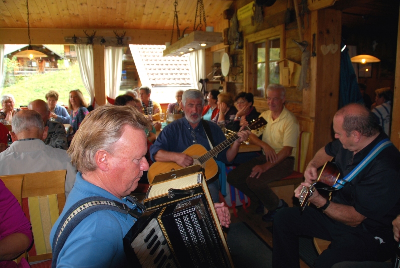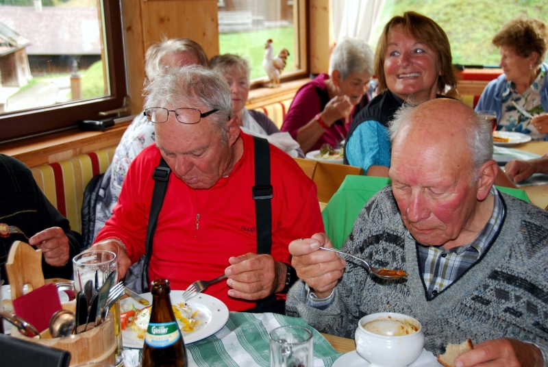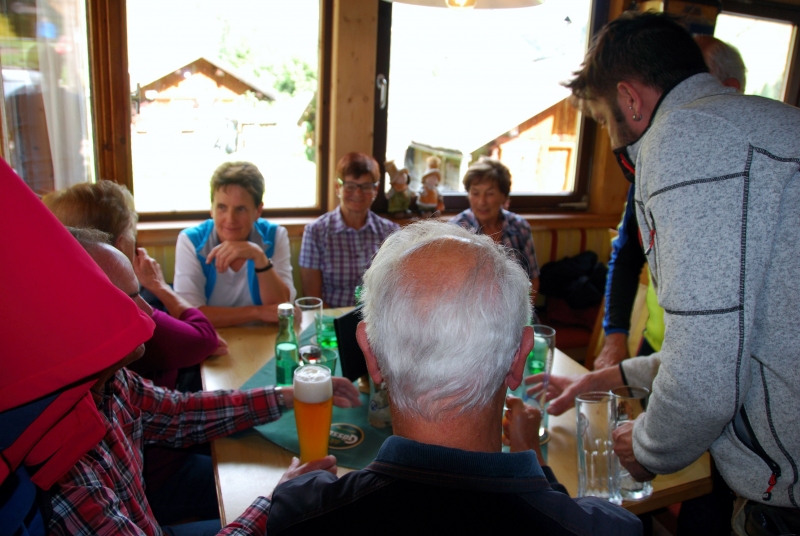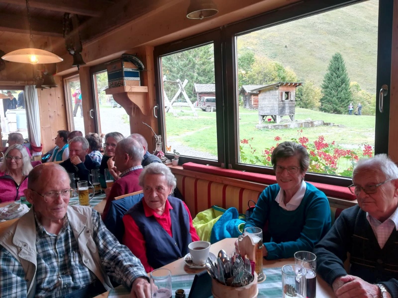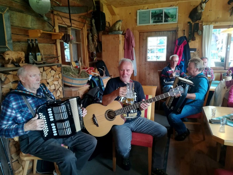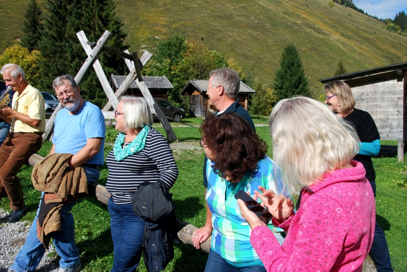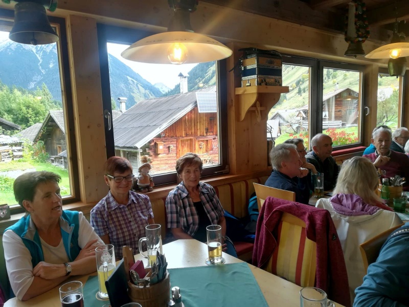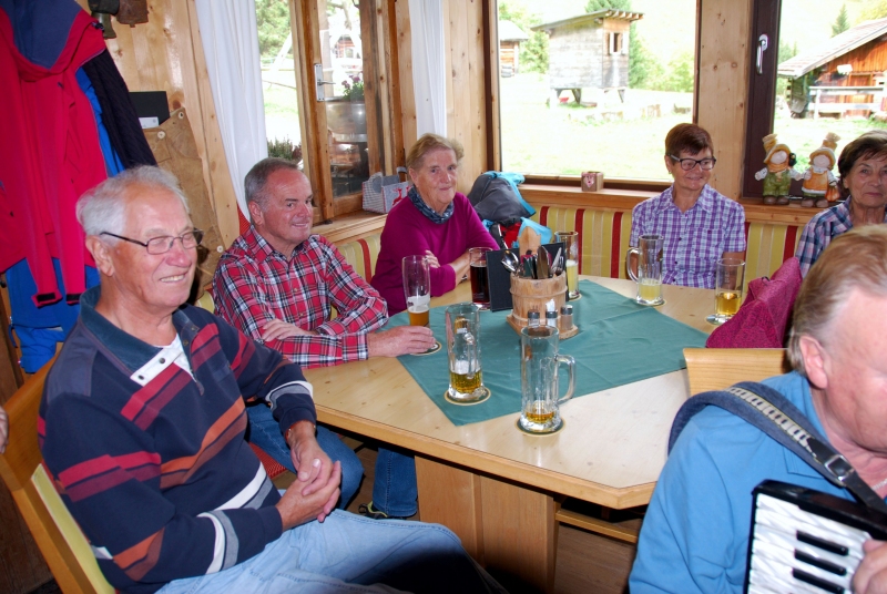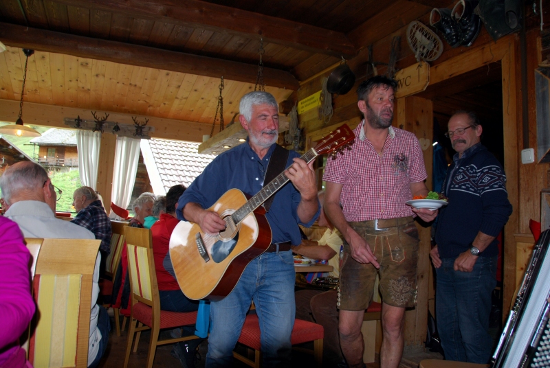 65 Mitglieder und Gäste der PVÖ Ortsgruppe Weißenbach am Lech fuhren mit Privat-PKW (Fahrgemeinschaften) bis zur Einfahrt nach Fallerschein. Wer nicht gut zu Fuß war, konnte hinein gefahren werden. Einige besonders Sportliche fuhren mit dem Bike von Weißenbach weg! Von dort gingen wir zu Fuß (ca. eine Dreiviertelstunde) zu Michls Fallerscheinstube, wo wir aßen und tranken und es uns bei dem gastfreundlichen Wirt Michl gut gehen ließen. Für Musik war ebenfalls – wie schon gewohnt – gesorgt: neun Musikanten sorgten für großartige und ausgelassene Stimmung, was sogar einige Gäste zum Mittun animierte.