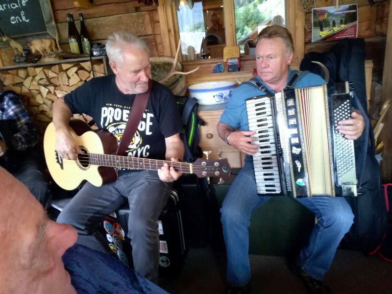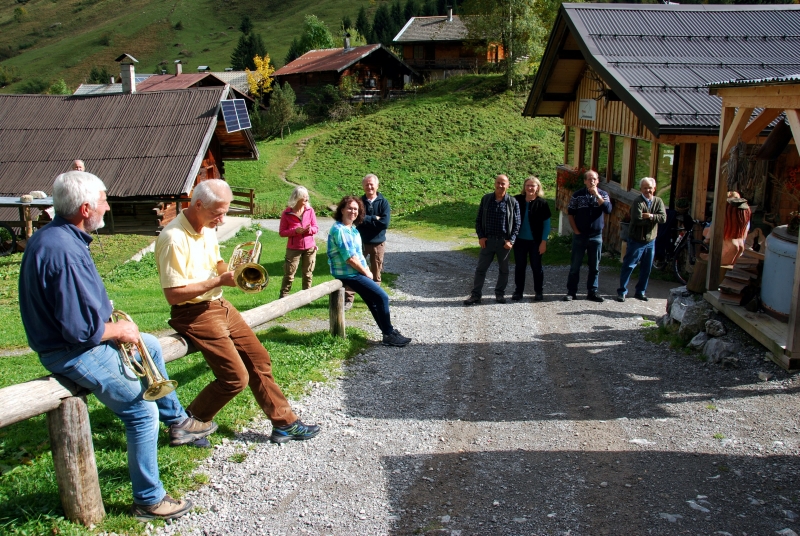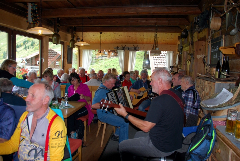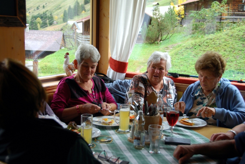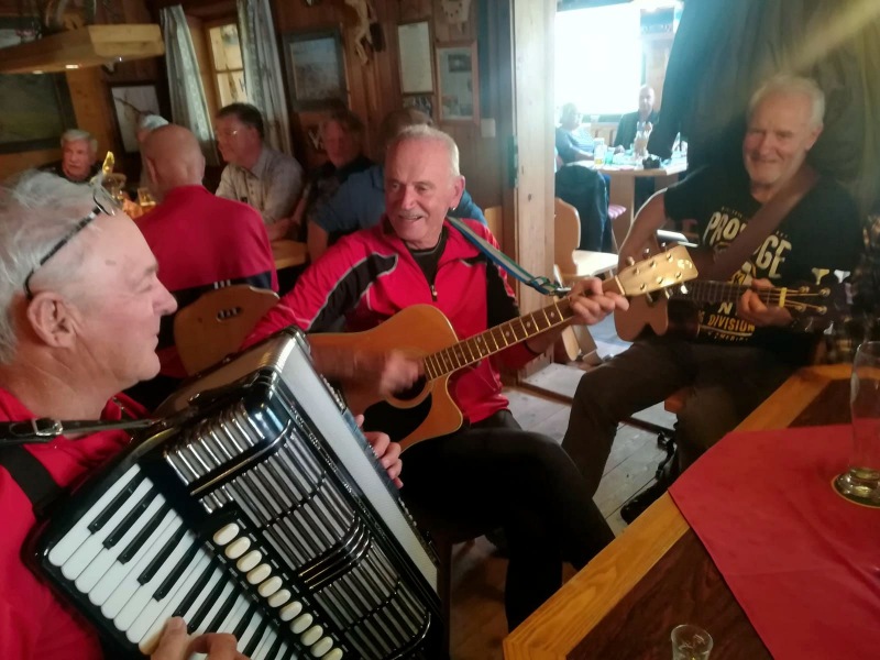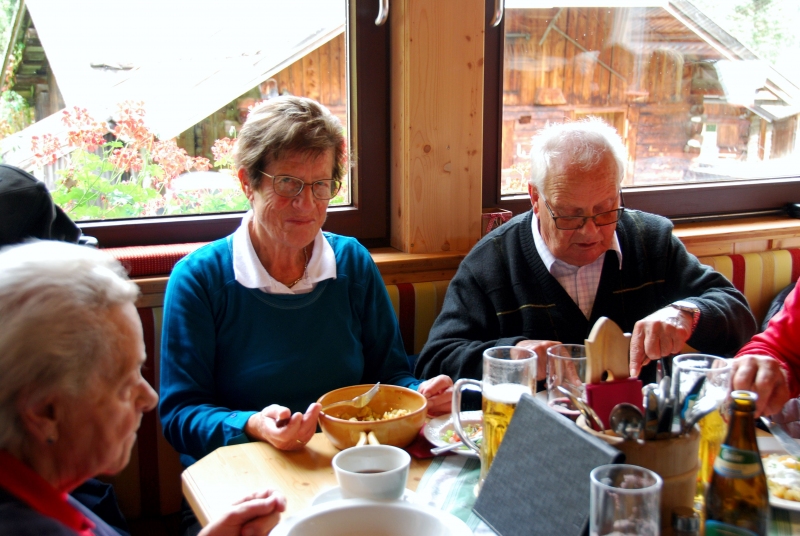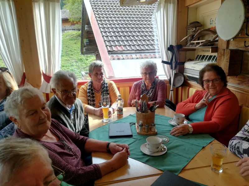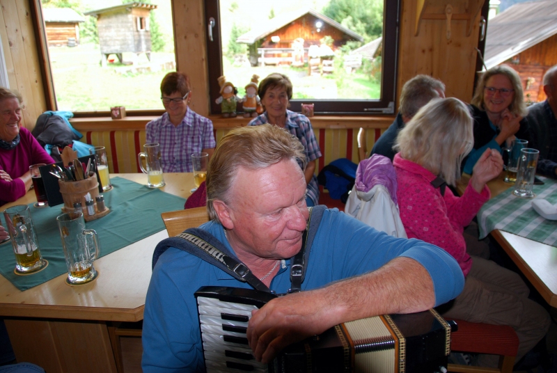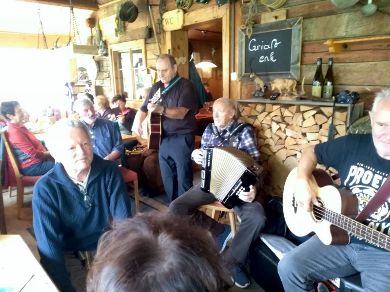 65 Mitglieder und Gäste der PVÖ Ortsgruppe Weißenbach am Lech fuhren mit Privat-PKW (Fahrgemeinschaften) bis zur Einfahrt nach Fallerschein. Wer nicht gut zu Fuß war, konnte hinein gefahren werden. Einige besonders Sportliche fuhren mit dem Bike von Weißenbach weg! Von dort gingen wir zu Fuß (ca. eine Dreiviertelstunde) zu Michls Fallerscheinstube, wo wir aßen und tranken und es uns bei dem gastfreundlichen Wirt Michl gut gehen ließen. Für Musik war ebenfalls – wie schon gewohnt – gesorgt: neun Musikanten sorgten für großartige und ausgelassene Stimmung, was sogar einige Gäste zum Mittun animierte.